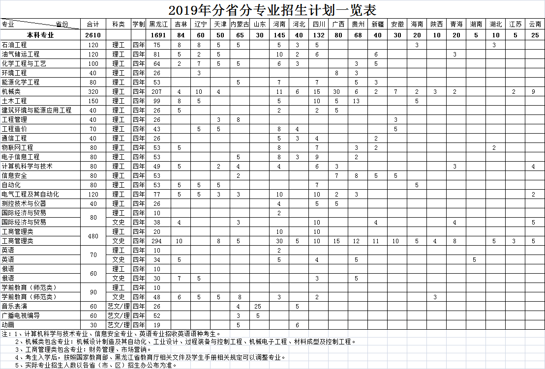 2019年分省分专业招生计划一览表