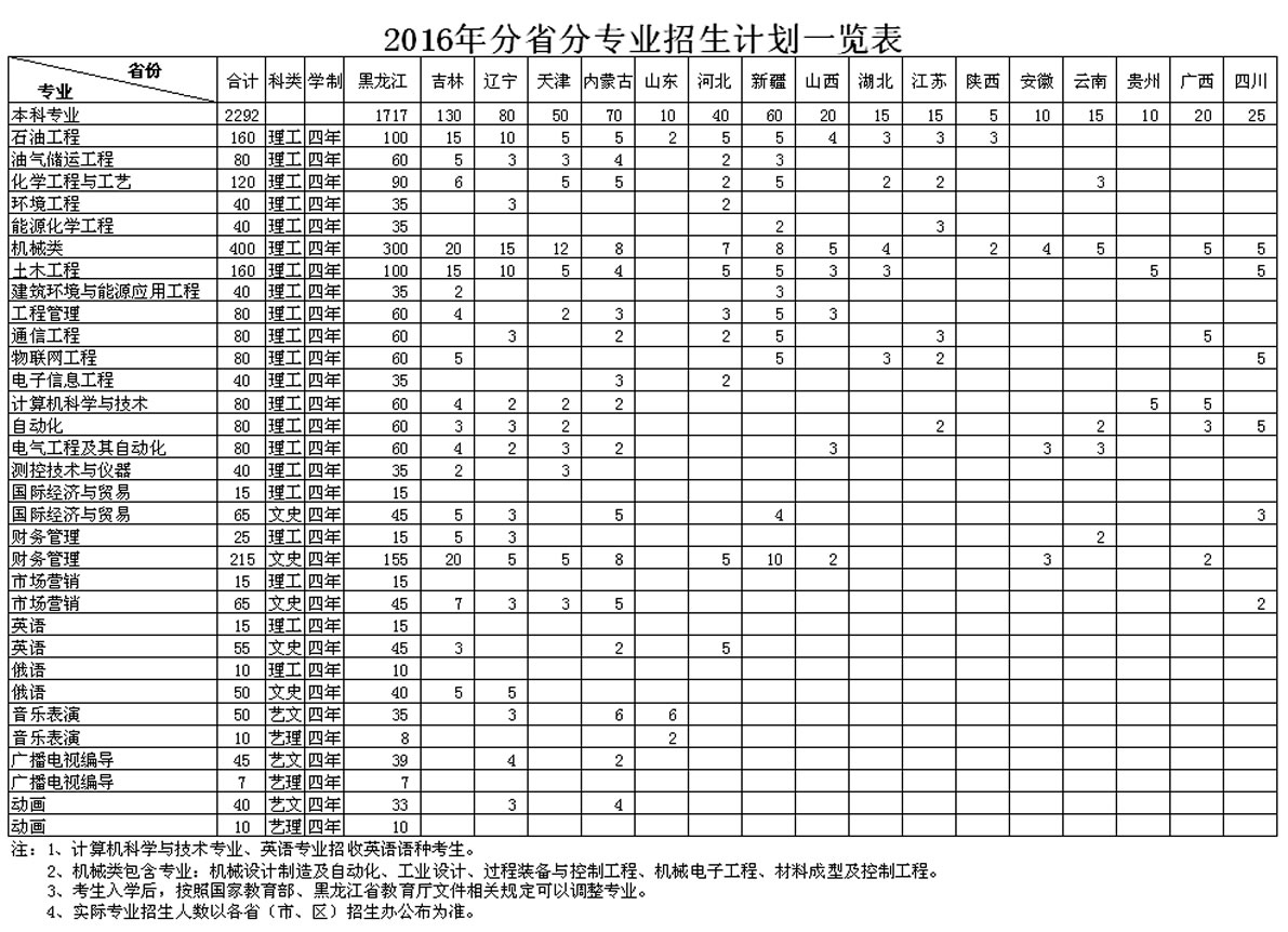 2016年分省分专业招生计划一览表