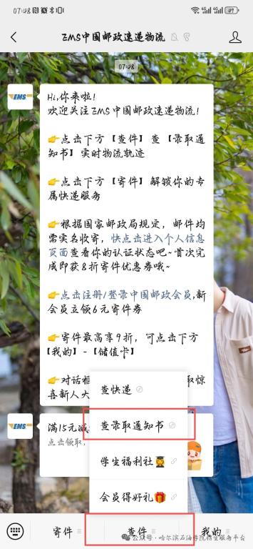 登录EMS官网、公众号或微信小程序,选择录取通知书查询,输入14位考生号即可查询。